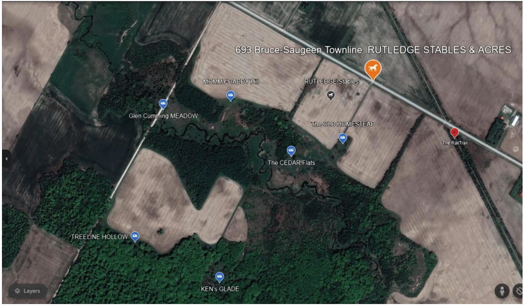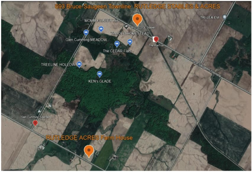 Nestled within the picturesque landscapes of Paisley, Ontario, Rutledge Acres spans 360 acres. Offering a tranquil escape, our property features 5 multi-acre sites for a Boondock campground, where gentle breezes from Lake Huron and serene pastoral settings create a peaceful retreat. Approximately 15 km of meticulously groomed trails traverse the expansive landscape, inviting hiking, trail running, and leisurely walks throughout the beautiful Bruce County. Embracing the outdoors, Rutledge Acres allows for hiking, horseback riding, and mountain biking on its scenic trails. The nearby Saugeen River adds to the allure, offering opportunities for kayaking adventures, with rentals available in Paisley for a scenic journey down the river.